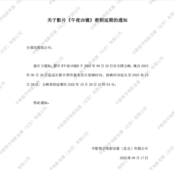 《午夜凶镜》全国点映的通知
