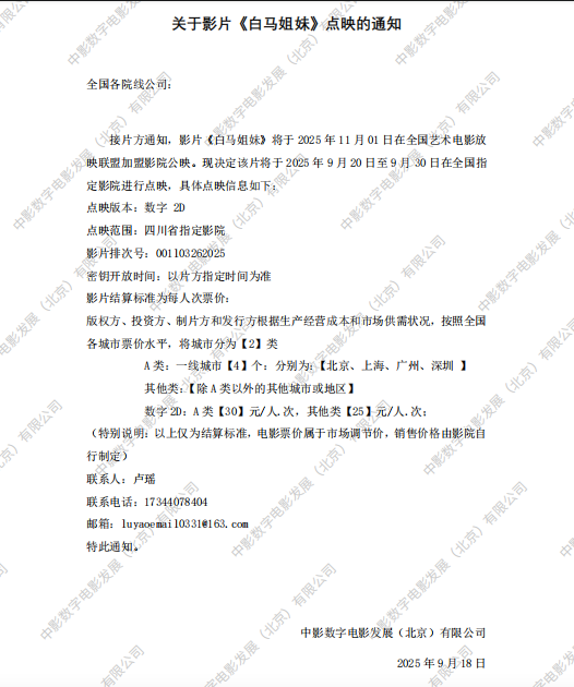 关于影片《我,许可》第二轮点映的通知