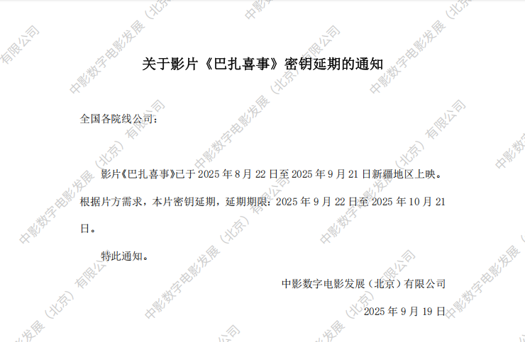 《巴扎喜事》第二次密钥延期的通知