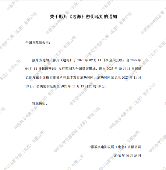《边海》第十次密钥延期的通知