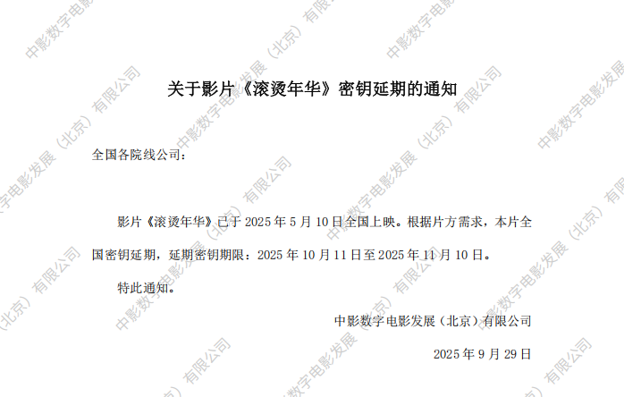 《滚烫年华》全国密钥延期的通知
