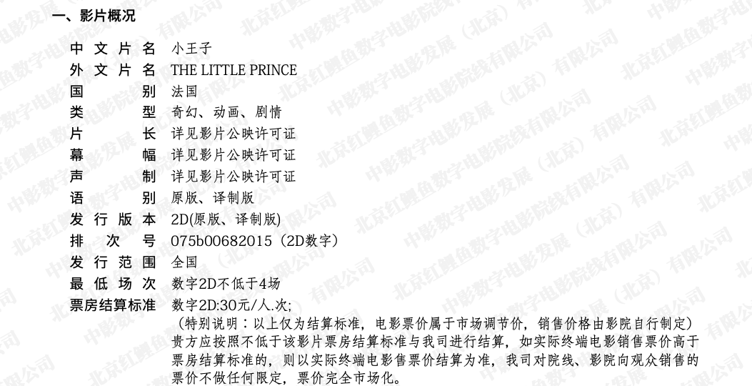 《小王子》发行通知(第二次延期)