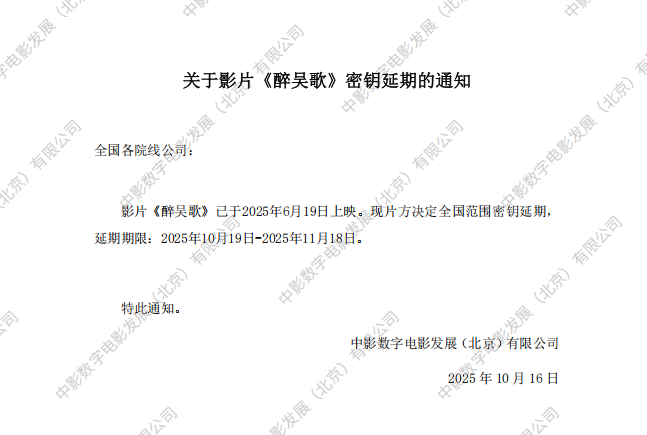 《醉吴歌》密钥延期的通知