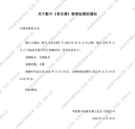 《音乐课》第十一次密钥延期的通知