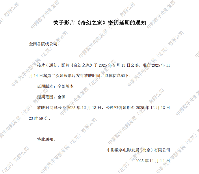 《奇幻之家》档期变更的通知
