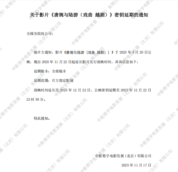 发行通知 » 《唐婉与陆游(戏曲 越剧)》第二次密钥延期的通知