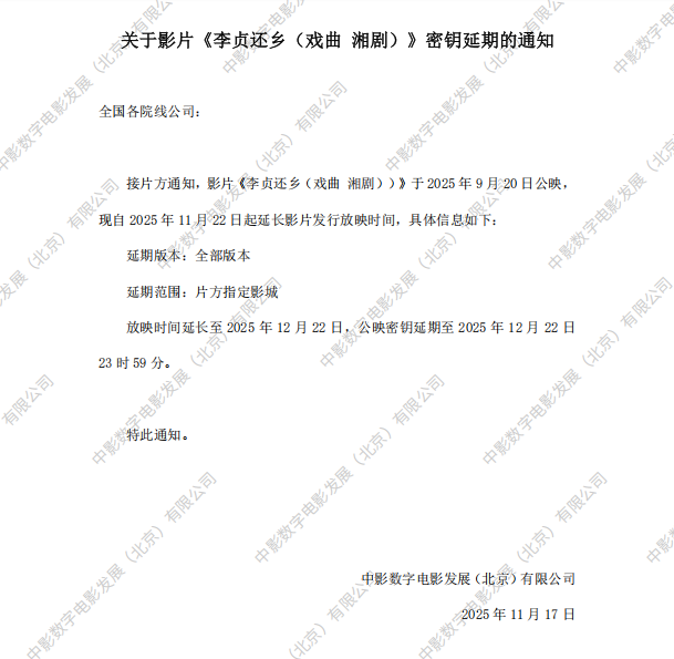 发行通知 » 《李贞还乡(戏曲 湘剧)》第二次密钥延期的通知