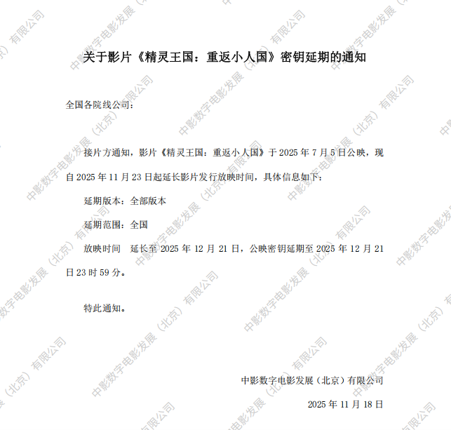 《精灵王国:重返小人国》调整票房结算标准的通知