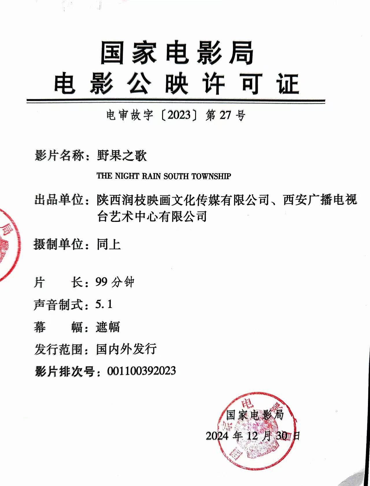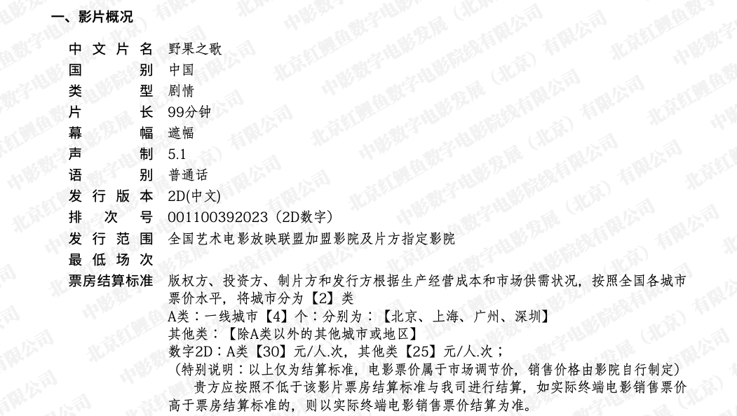 《野果之歌》点映的通知