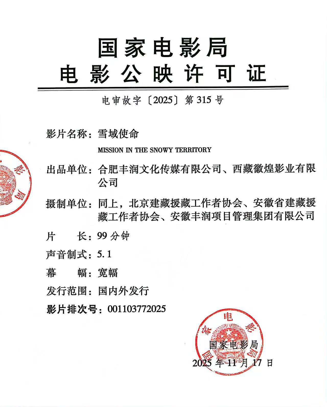 发行通知 » 《雪域使命》发行通知