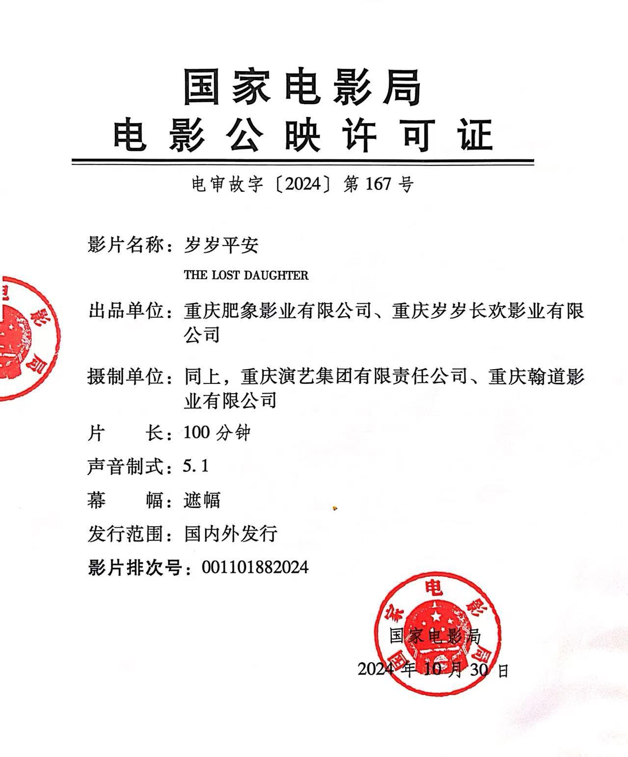 关于影片《岁岁平安》第三次密钥延期的通知