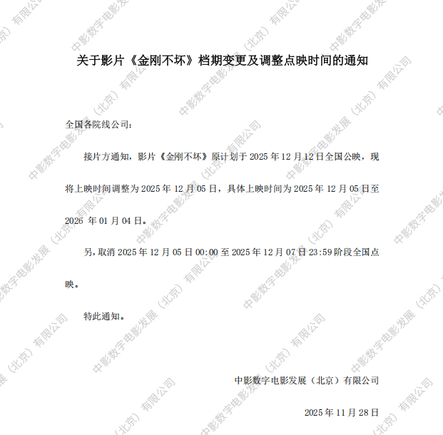 《金刚不坏》全国点映的通知