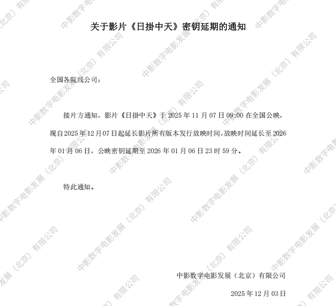 《日掛中天》第二次密钥延期的通知