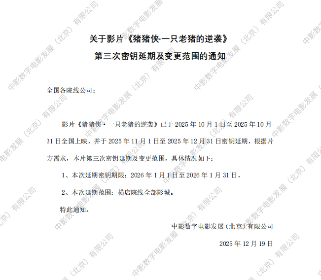《猪猪侠·一只老猪的逆袭》第二次密钥延期的通知