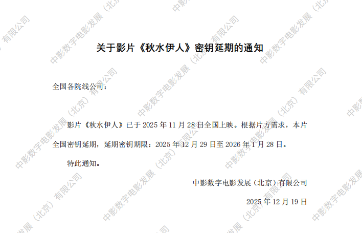 《秋水伊人》密钥延期的通知