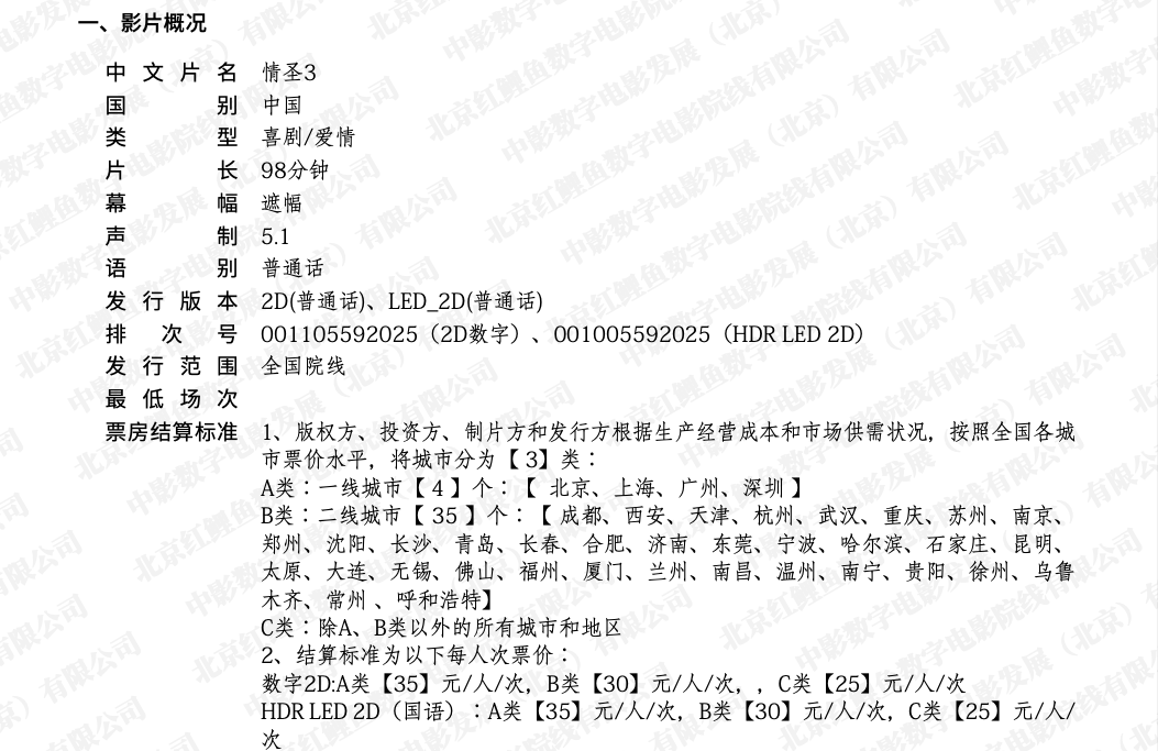 《情圣3》调整票房结算标准的通知