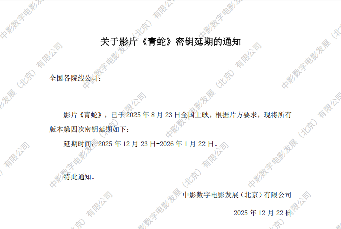 《青蛇》第三次密钥延期的通知