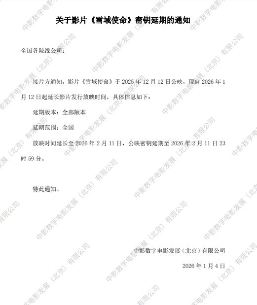 《雪域使命》第三次密钥延期的通知