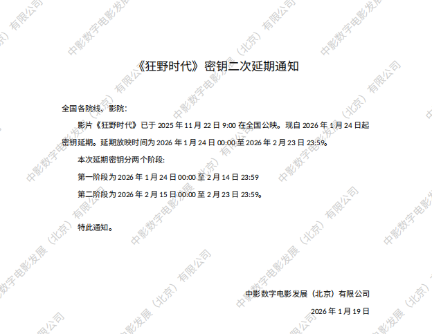 《狂野时代》密钥延期的通知