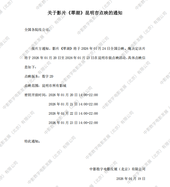 电影《翠湖》发行通知