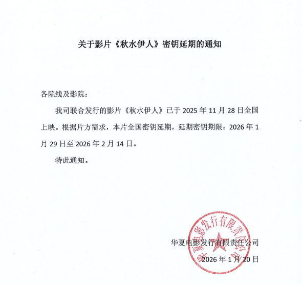 《秋水伊人》密钥延期的通知
