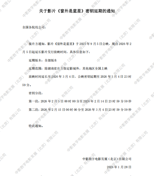 《窗外是蓝星》第三次密钥延期的通知