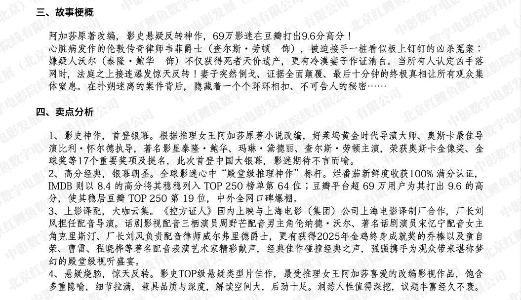《控方证人》全国部分城市点映的通知