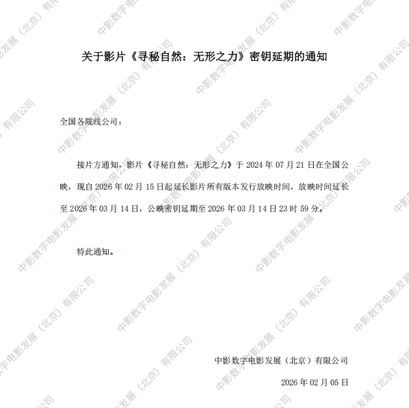 《寻秘自然:无形之力》调整票房结算标准的通知