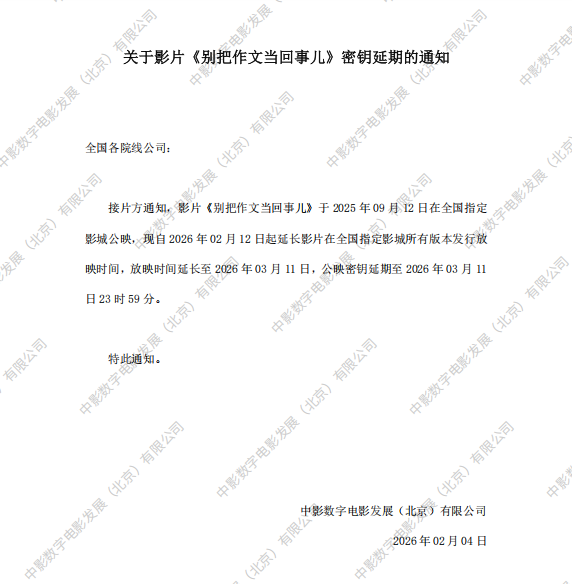 《别把作文当回事》密钥延期及调整影片票房结算标准的通知