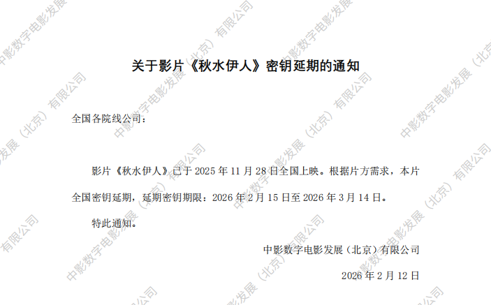 《秋水伊人》密钥延期的通知