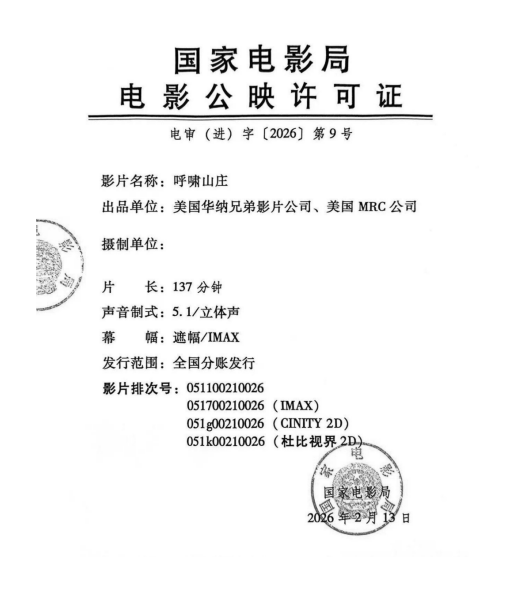 发行版本:2D、杜比视界2D、激光IMAX2D5.0(注:本次IMAX激光版也可以在IMAX数字影厅兼容放映)、CINITY2D(原版、译制版)