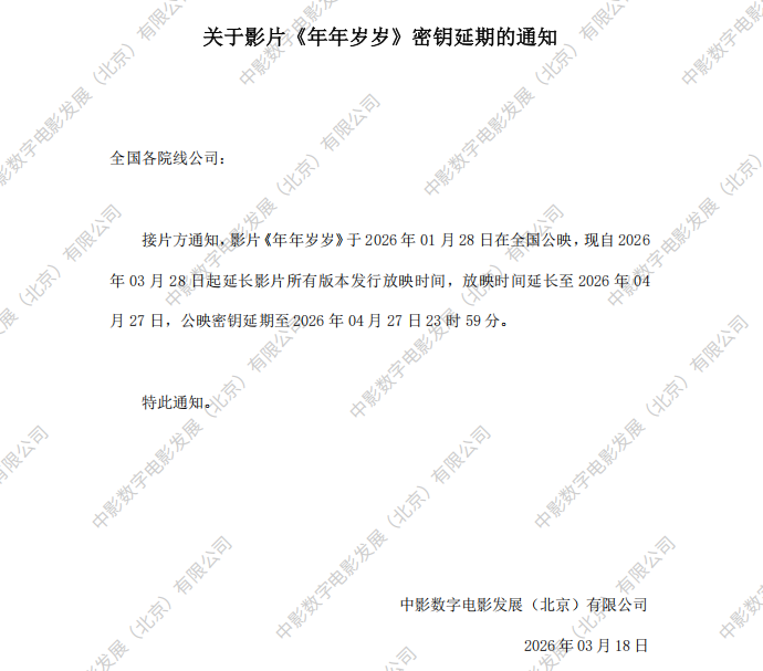 《年年岁岁》密钥延期的通知