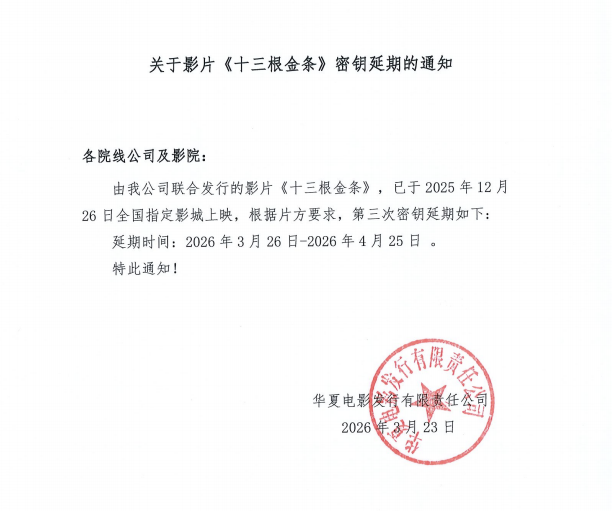 《十三根金条》密钥延期的通知