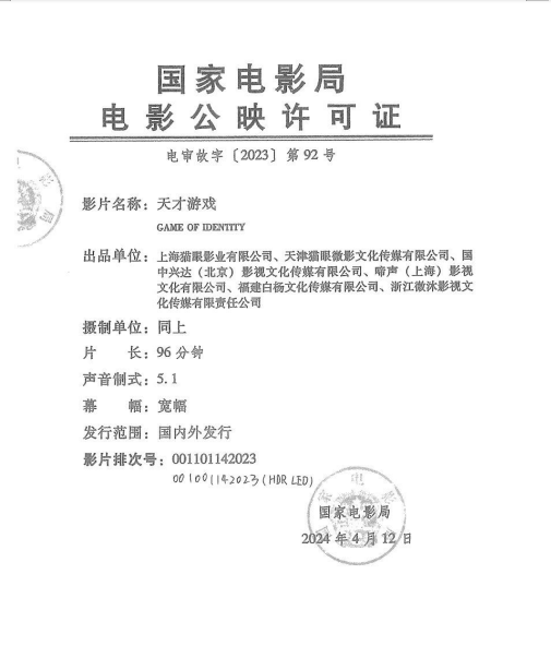 发 行:上海猫眼影业有限公司、天津猫眼微影文化传媒有限公司