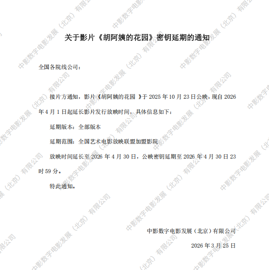 《胡阿姨的花园》第二次密钥延期的通知