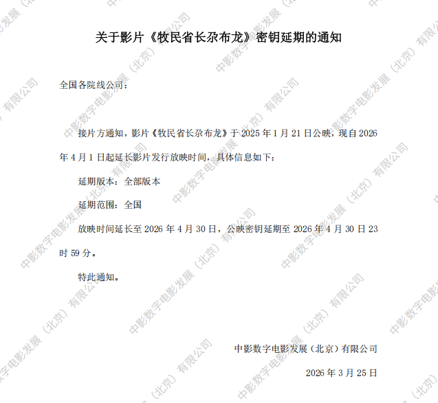 发行通知 » 《牧民省长尕布龙》第十四次密钥延期的通知
