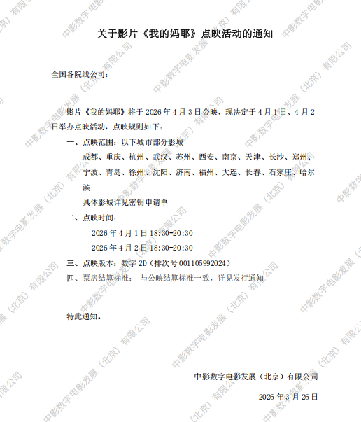发行通知 » 《我的妈耶》点映的通知