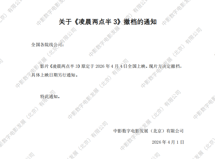《凌晨两点半3》撤档的通知