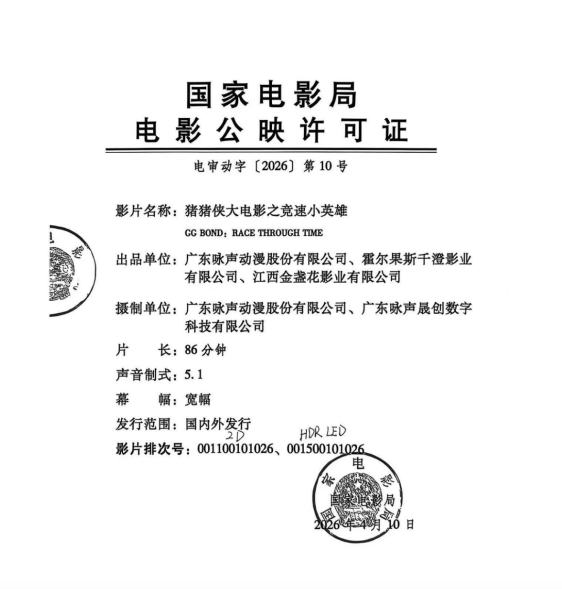 联合发行:广东咏声动漫股份有限公司、北京众合千澄影视文化传媒有限公司、华夏电影发行有限责任公司