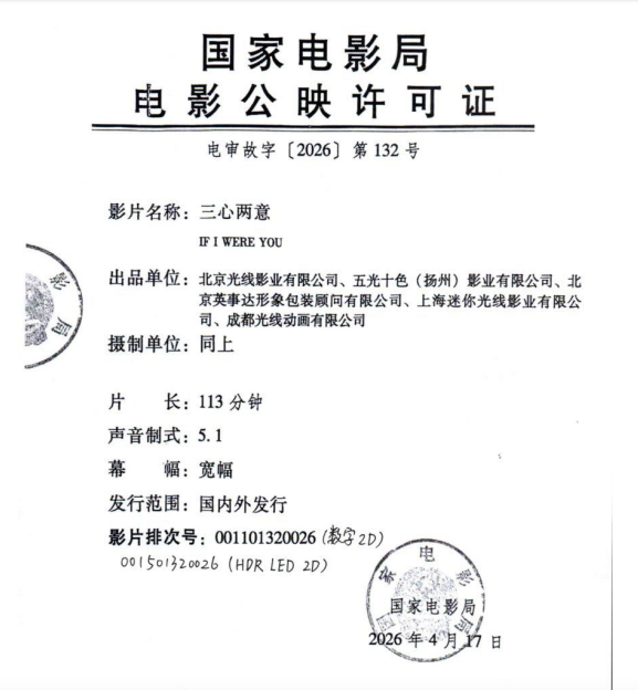 发 行:北京光线影业有限公司