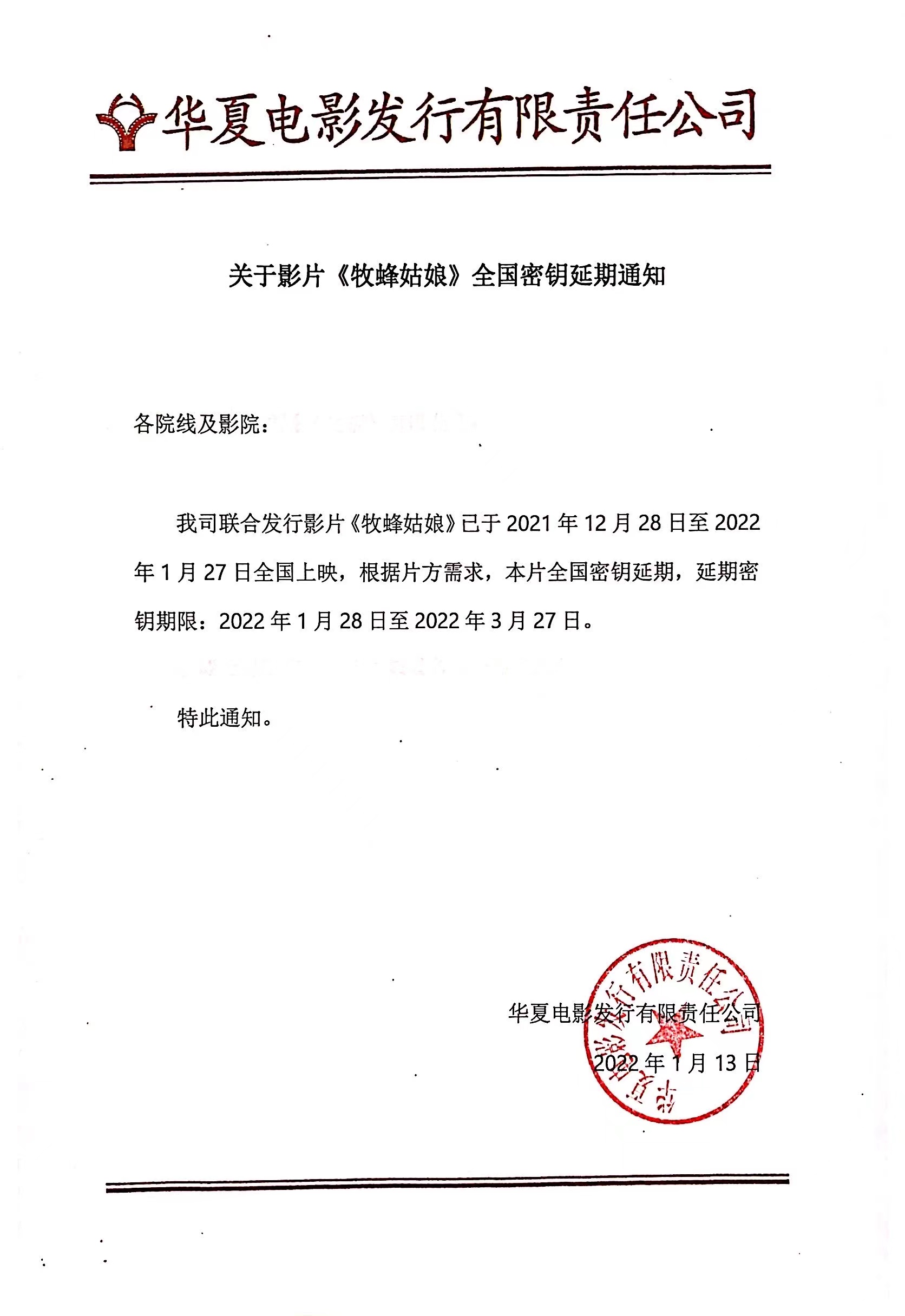 《欢喜哥的春天》第三次密钥延期的通知