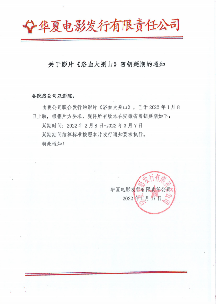 发行通知 » 《浴血大别山》密钥延期的通知