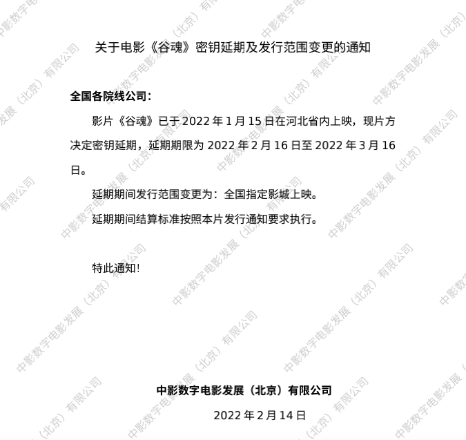 发行通知 » 《谷魂》密钥延期及发行范围变更的通知
