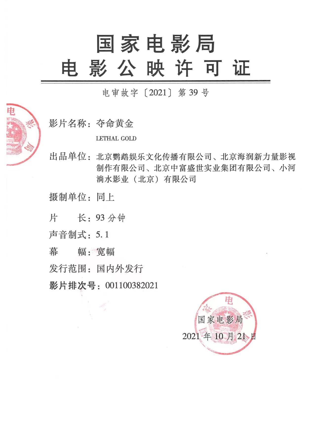 发行通知 » 《夺命黄金》发行通知
