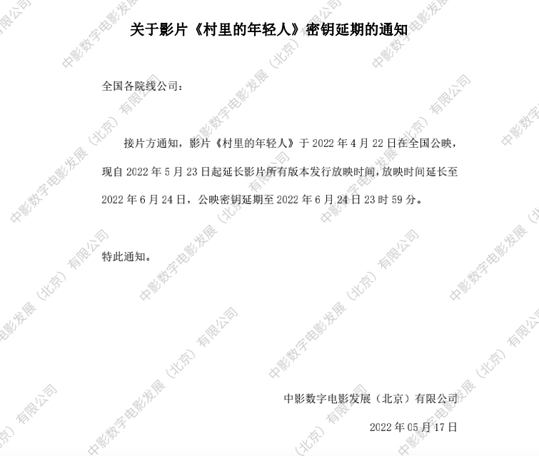 《回农村干大事》第十次全国密钥延期的通知