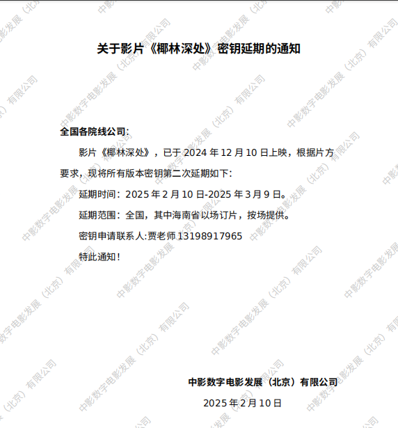 《椰林深处》第九次密钥延期的通知