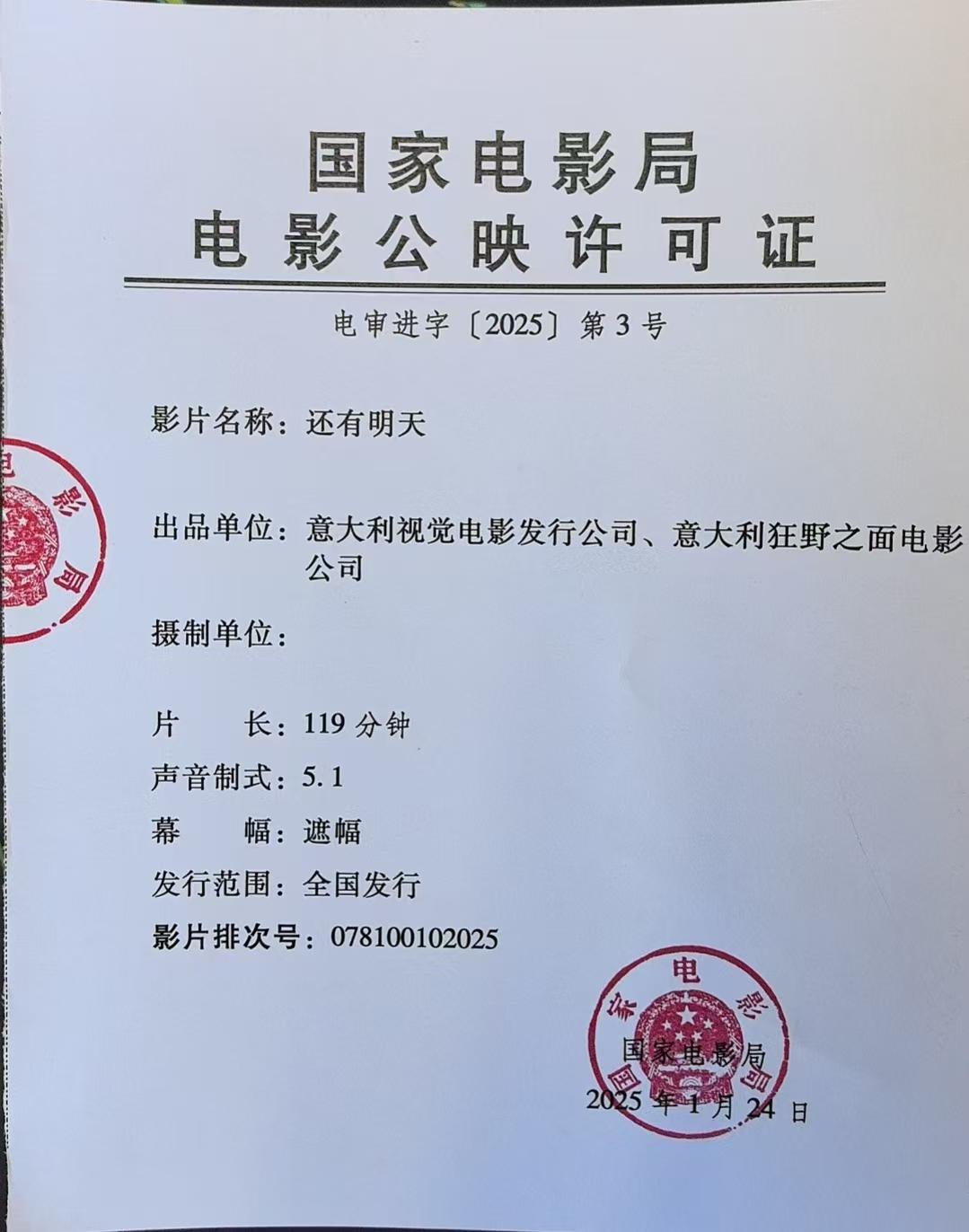 《还有明天》发行通知(第二次延期)