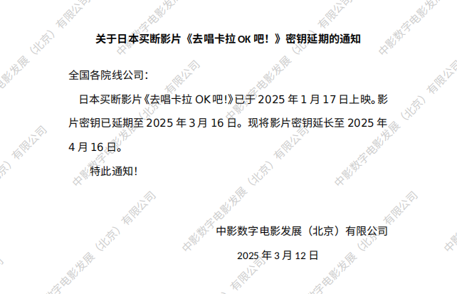 《去唱卡拉ok吧!》密钥延期的通知