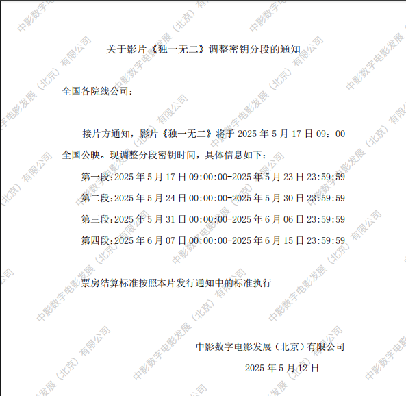 《独一无二》档期变更及点映的通知