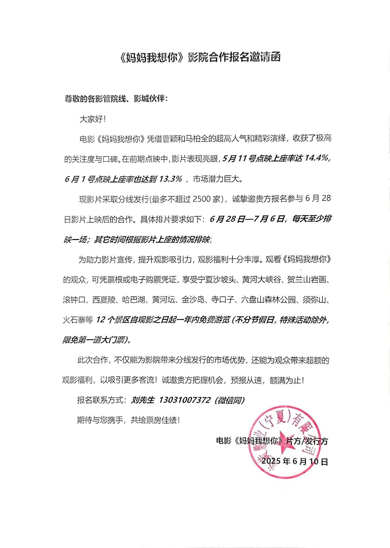 《妈妈,我想你》点映的通知